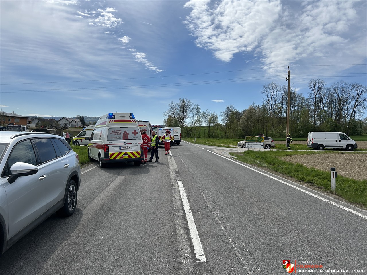 Gestern Nachmittag ereignete sich ein Verkehrsunfall mit vier beteiligten Fahrzeugen – die Feuerwehren Hofkirchen und Rottenbach wurden zur Personenrettung alarmiert.